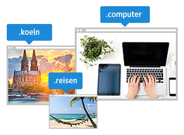 Es gibt viele verschiedene Arten von Top-Level-Domains, die bekanntesten sind wohl die länderspezifischen und die generischen TLDs, dazu gehören unter anderem Endungen wie .biz, .com, .info, .org. Bei WEB.DE Domain & Mail können Sie sich Domain-Endungen sichern, die noch besser das Thema Ihres Webprojektes verdeutlichen, wie .berlin, .bayern, .computer, .picture, .reisen und viele mehr. Suchen Sie sich eine passende Top-Level-Domain aus!